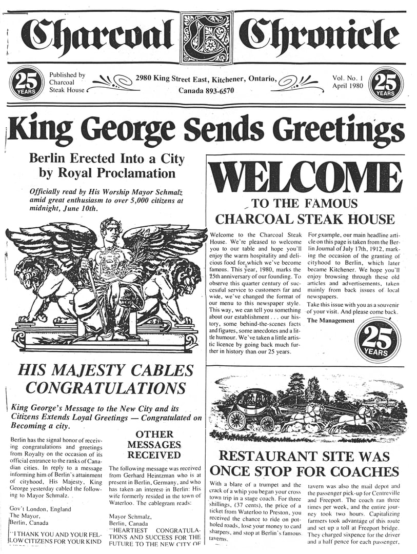 In 1956, Del and Ortha Wideman purchased a 30 seat restaurant called the Charcoal Pit on the outskirts of Kitchener. Through incredible hard work, they grew their knowledge of the restaurant trade and cultivated a loyal following. Their Charcoal Pit enjoyed great success and went on to become the Charcoal Steak House which has been the backdrop to Kitchener-Waterloo's most significant life events. From milestone birthdays to year end company celebrations,family reunions to quiet anniversaries, we've been more than just a restaurant, we've been a constant in the community's shared history. Today we are still locally owned by the Wideman family with an incredible team committed to consistent quality cuisine, unwavering service standards and steadfast support of team and community